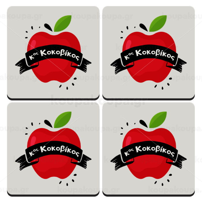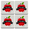 Αναμνηστικό Δώρο Δασκάλου Κόκκινο Μήλο, ΣΕΤ 4 Σουβέρ ξύλινα τετράγωνα (9cm)