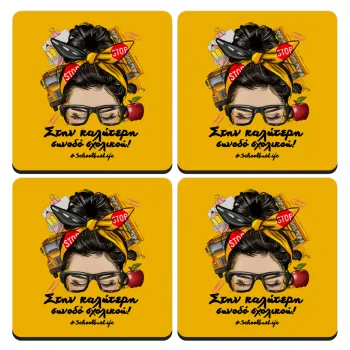 Στην καλύτερη συνοδό σχολικού!, ΣΕΤ 4 Σουβέρ ξύλινα τετράγωνα (9cm)