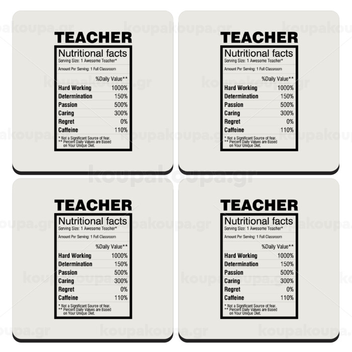 teacher nutritional facts, ΣΕΤ 4 Σουβέρ ξύλινα τετράγωνα (9cm)