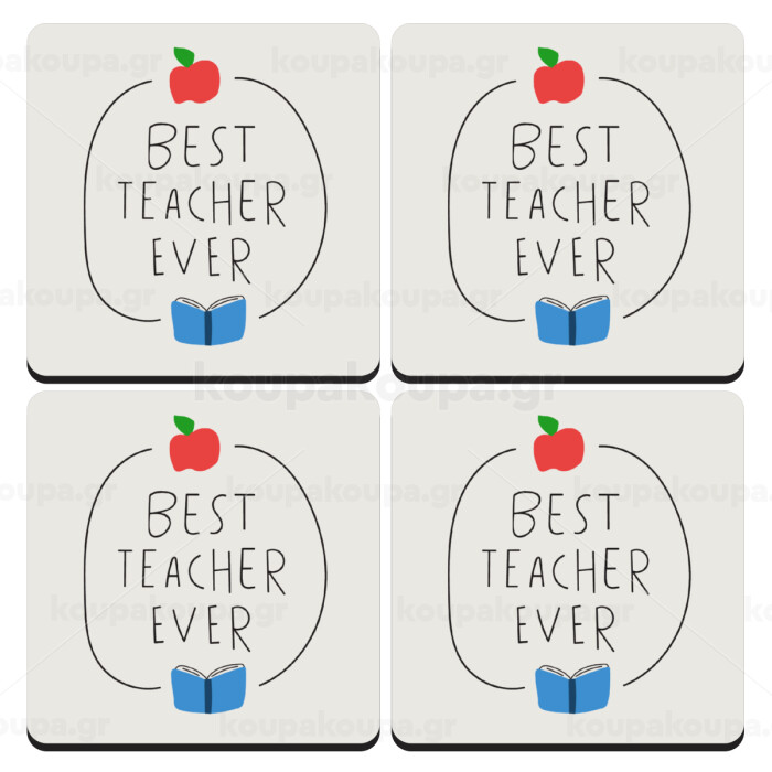 Best teacher ever, ΣΕΤ 4 Σουβέρ ξύλινα τετράγωνα (9cm)