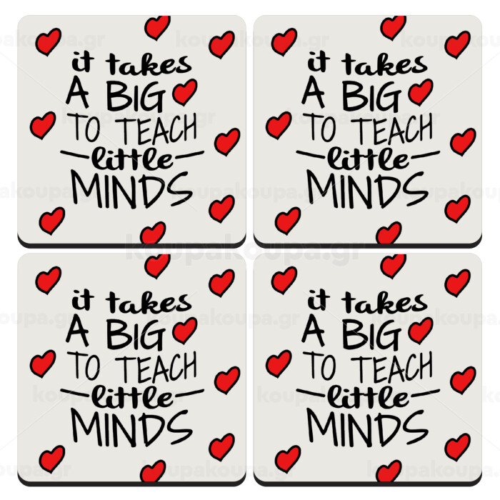 It takes big heart to teach little minds, ΣΕΤ 4 Σουβέρ ξύλινα τετράγωνα (9cm)