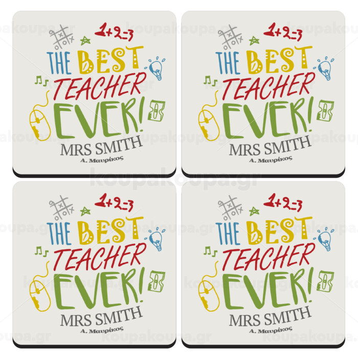 The best teacher ever!, ΣΕΤ 4 Σουβέρ ξύλινα τετράγωνα (9cm)
