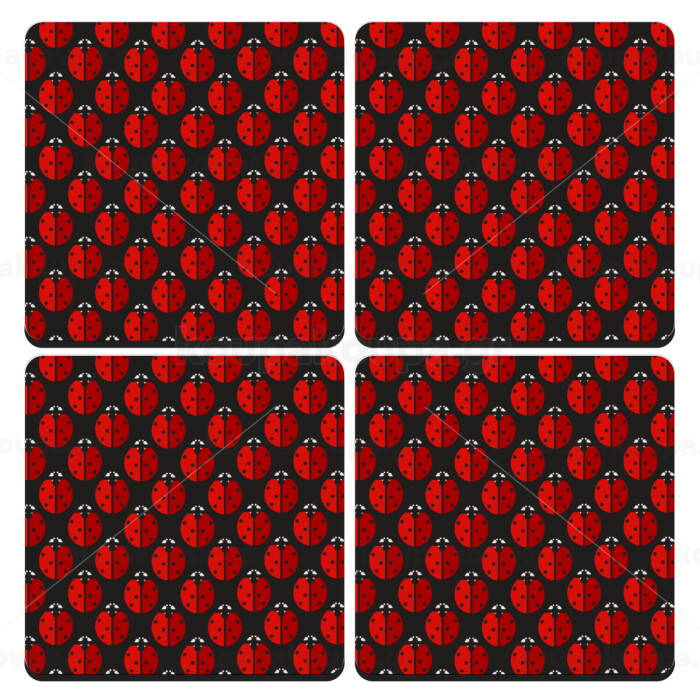 Coccinella, ΣΕΤ 4 Σουβέρ ξύλινα τετράγωνα (9cm)