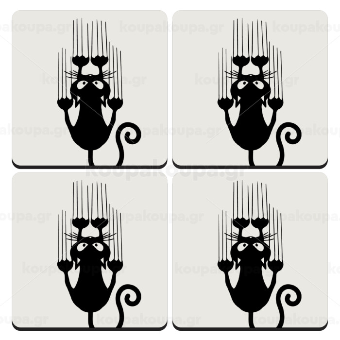 Cat scratching, ΣΕΤ 4 Σουβέρ ξύλινα τετράγωνα (9cm)