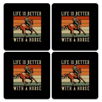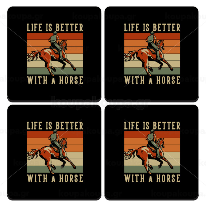 Life is Better with a Horse, ΣΕΤ 4 Σουβέρ ξύλινα τετράγωνα (9cm)
