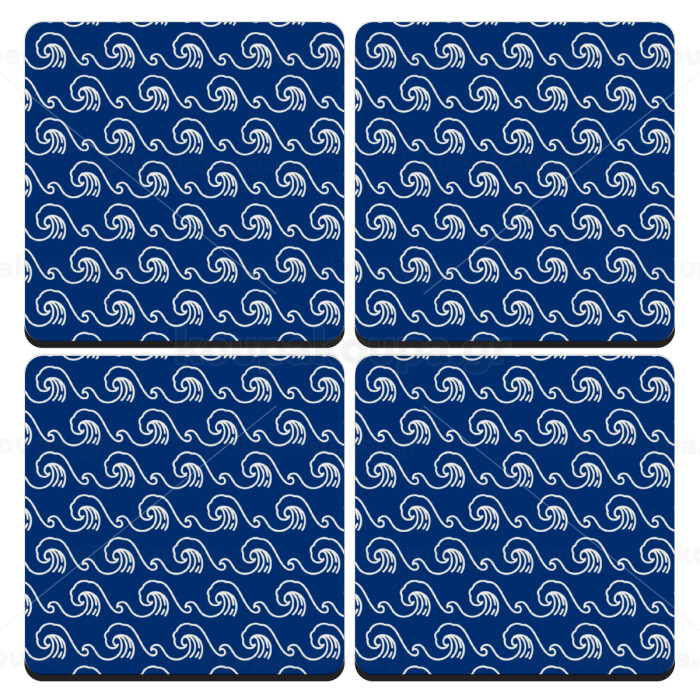 Blue Waves, ΣΕΤ 4 Σουβέρ ξύλινα τετράγωνα (9cm)