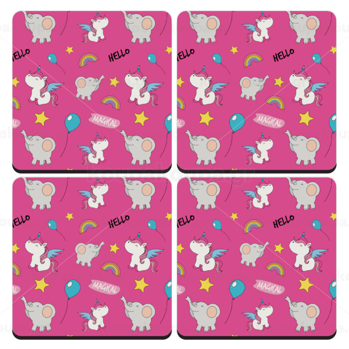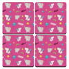 Happy Clouds Doodle, ΣΕΤ 4 Σουβέρ ξύλινα τετράγωνα (9cm)