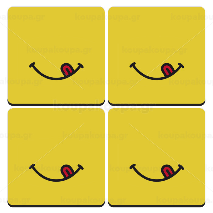 Χαμόγελο , ΣΕΤ 4 Σουβέρ ξύλινα τετράγωνα (9cm)