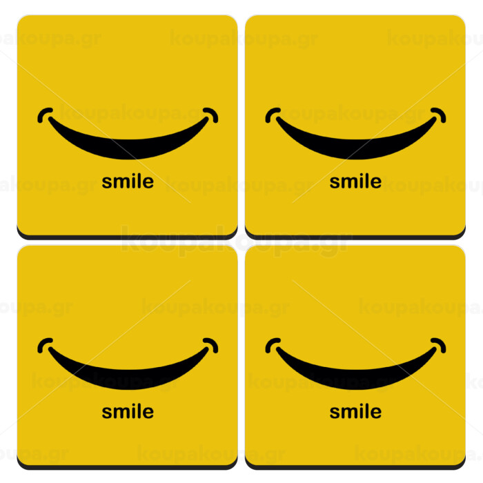 Smile!!!, ΣΕΤ 4 Σουβέρ ξύλινα τετράγωνα (9cm)