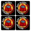 Among US Eat Sleep Repeat Impostor, ΣΕΤ 4 Σουβέρ ξύλινα τετράγωνα (9cm)