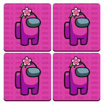 Among US girl, ΣΕΤ 4 Σουβέρ ξύλινα τετράγωνα (9cm)