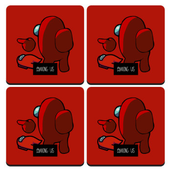 Among US i am impostor..., ΣΕΤ 4 Σουβέρ ξύλινα τετράγωνα (9cm)