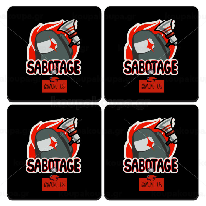 Among US Sabotage, ΣΕΤ 4 Σουβέρ ξύλινα τετράγωνα (9cm)