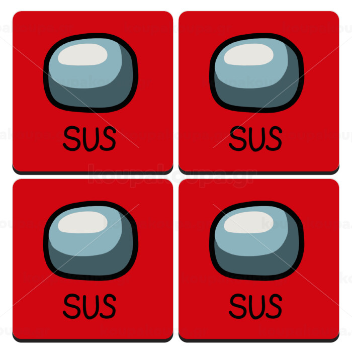 Among US SUS!!!, ΣΕΤ 4 Σουβέρ ξύλινα τετράγωνα (9cm)