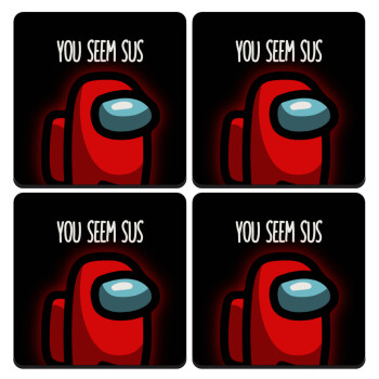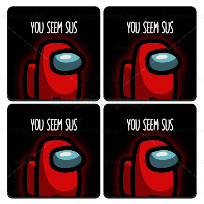 Among US, you seem sus, ΣΕΤ 4 Σουβέρ ξύλινα τετράγωνα (9cm)