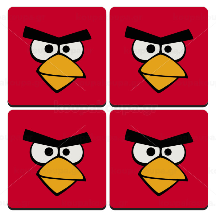 Angry birds eyes, ΣΕΤ 4 Σουβέρ ξύλινα τετράγωνα (9cm)