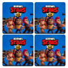 Brawl Stars Blue, ΣΕΤ 4 Σουβέρ ξύλινα τετράγωνα (9cm)