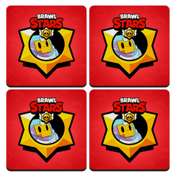 Brawl Stars Sprout, ΣΕΤ 4 Σουβέρ ξύλινα τετράγωνα (9cm)