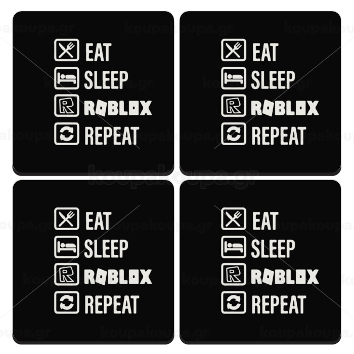 Eat, Sleep, Roblox, Repeat, ΣΕΤ 4 Σουβέρ ξύλινα τετράγωνα (9cm)