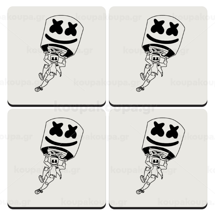 Fortnite Marshmello, ΣΕΤ 4 Σουβέρ ξύλινα τετράγωνα (9cm)
