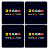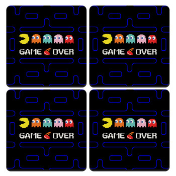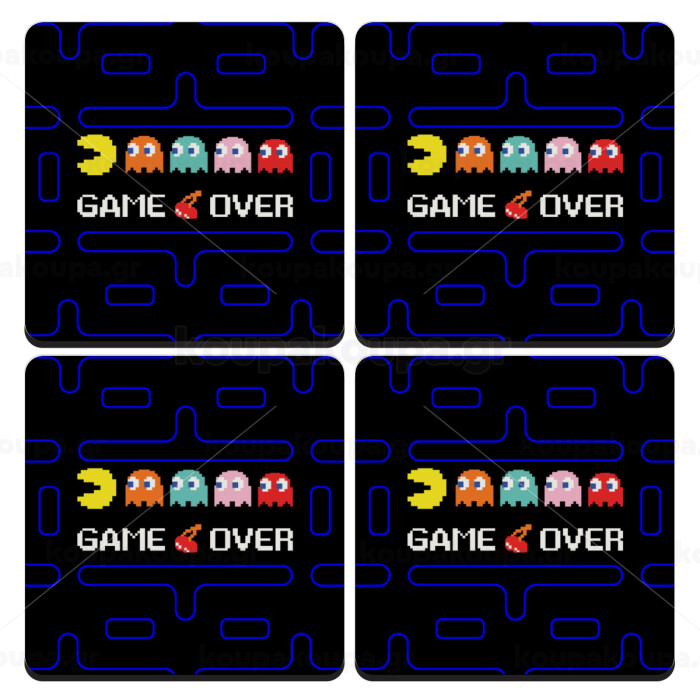 GAME OVER pac-man, ΣΕΤ 4 Σουβέρ ξύλινα τετράγωνα (9cm)