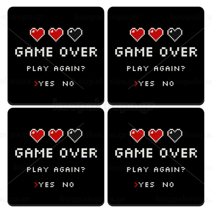 GAME OVER, Play again? YES - NO, ΣΕΤ 4 Σουβέρ ξύλινα τετράγωνα (9cm)