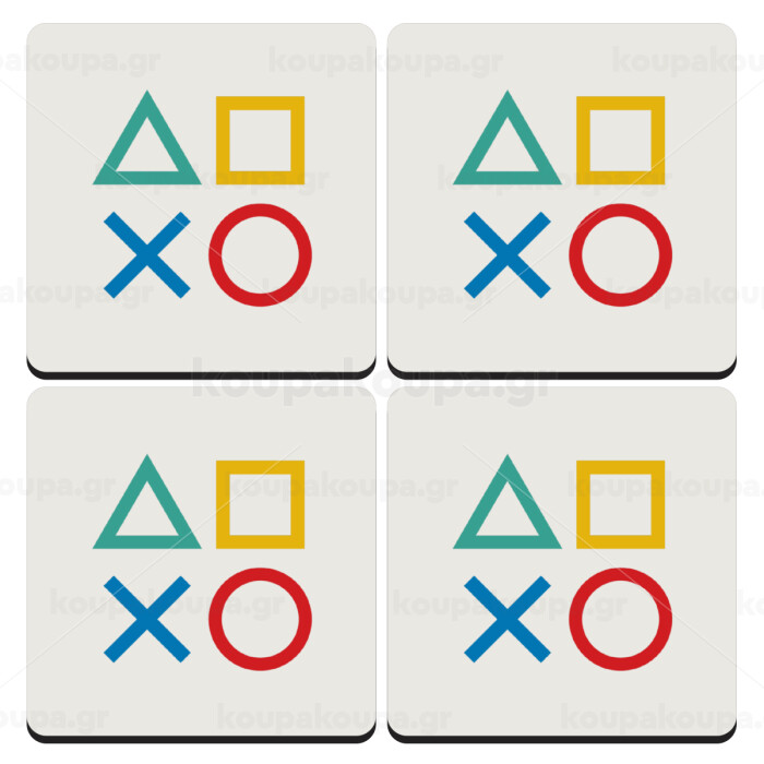 Gaming Symbols, ΣΕΤ 4 Σουβέρ ξύλινα τετράγωνα (9cm)