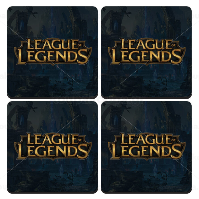 League of Legends LoL, ΣΕΤ 4 Σουβέρ ξύλινα τετράγωνα (9cm)