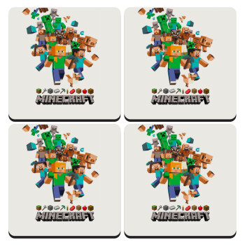 Minecraft adventure, ΣΕΤ 4 Σουβέρ ξύλινα τετράγωνα (9cm)