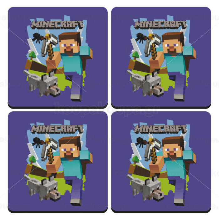Minecraft Alex, ΣΕΤ 4 Σουβέρ ξύλινα τετράγωνα (9cm)
