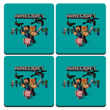 Minecraft Alex, ΣΕΤ 4 Σουβέρ ξύλινα τετράγωνα (9cm)