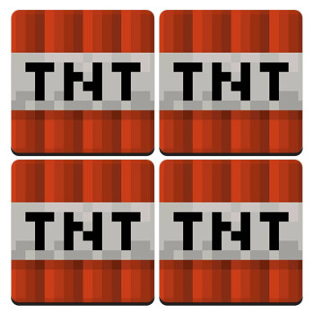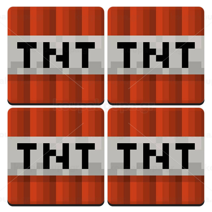 Minecraft TNT, ΣΕΤ 4 Σουβέρ ξύλινα τετράγωνα (9cm)