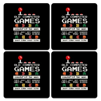 OLD computer games couldn't be won just like real life!, ΣΕΤ 4 Σουβέρ ξύλινα τετράγωνα (9cm)