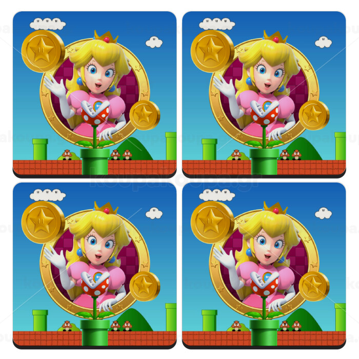 Princess Peach Toadstool, ΣΕΤ 4 Σουβέρ ξύλινα τετράγωνα (9cm)