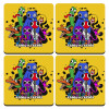 Rainbow friends, ΣΕΤ 4 Σουβέρ ξύλινα τετράγωνα (9cm)