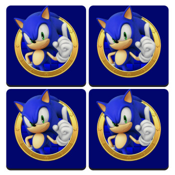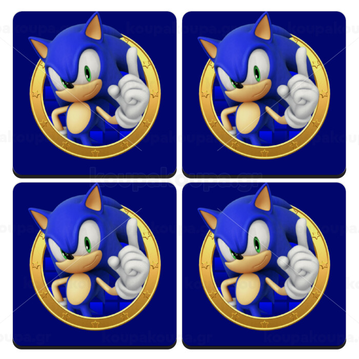 Sonic the hedgehog, ΣΕΤ 4 Σουβέρ ξύλινα τετράγωνα (9cm)