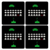 Space invaders, ΣΕΤ 4 Σουβέρ ξύλινα τετράγωνα (9cm)
