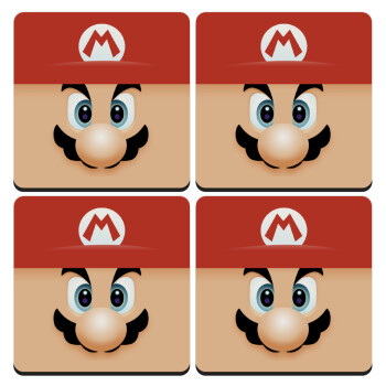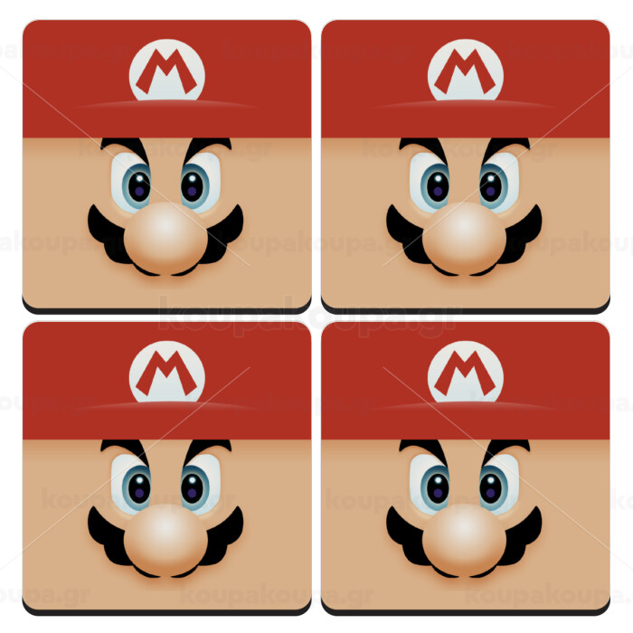 Super mario flat, ΣΕΤ 4 Σουβέρ ξύλινα τετράγωνα (9cm)
