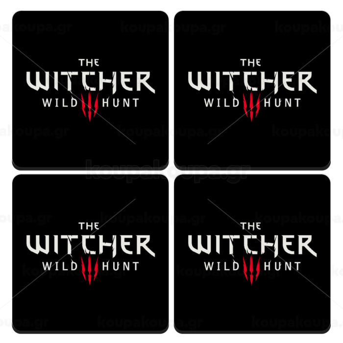 The witcher III wild hunt, ΣΕΤ 4 Σουβέρ ξύλινα τετράγωνα (9cm)