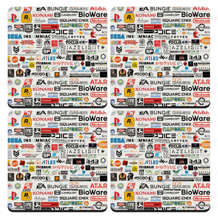 Video Game Studio Logos, ΣΕΤ 4 Σουβέρ ξύλινα τετράγωνα (9cm)