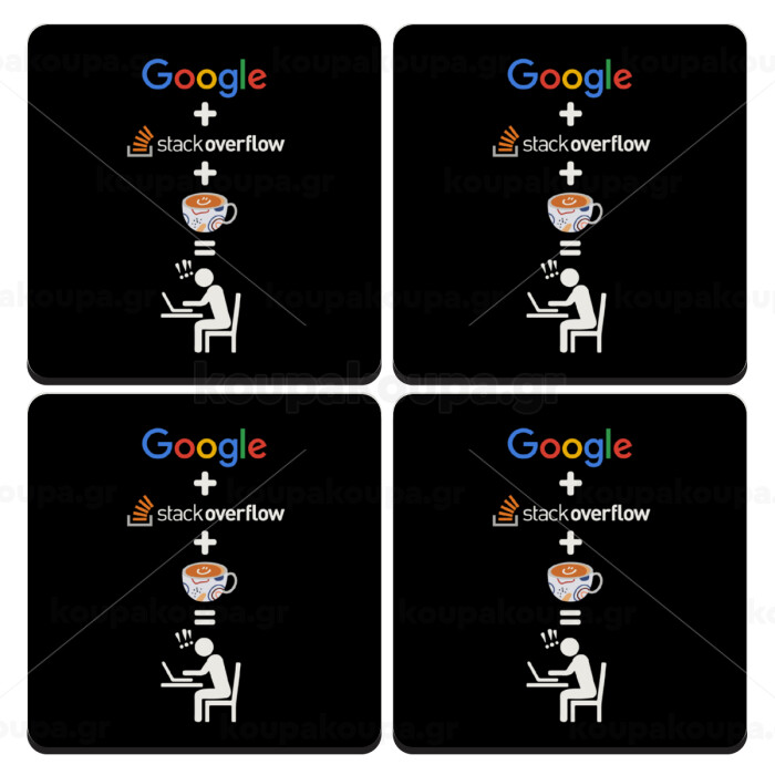 Google + Stack overflow + Coffee, ΣΕΤ 4 Σουβέρ ξύλινα τετράγωνα (9cm)