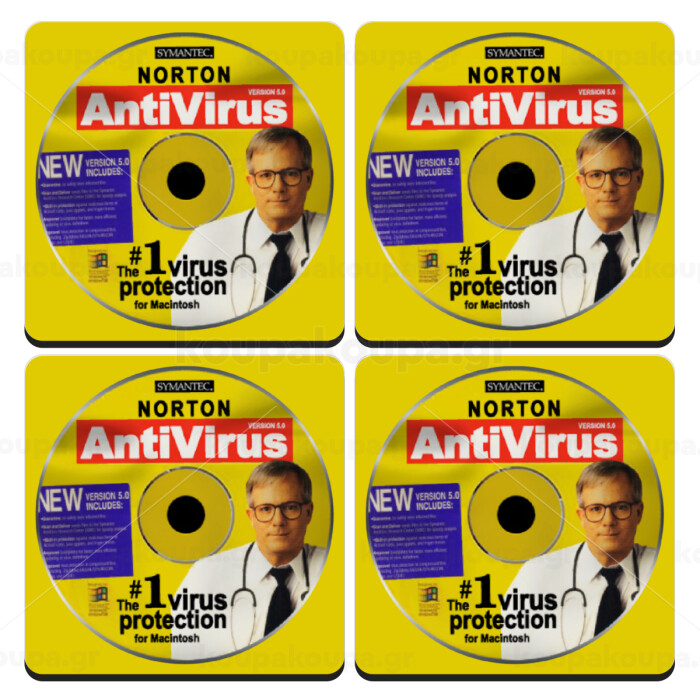 Norton antivirus, ΣΕΤ 4 Σουβέρ ξύλινα τετράγωνα (9cm)
