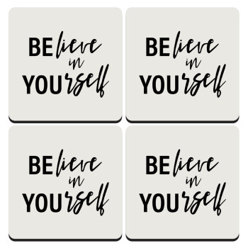 Believe in your self, ΣΕΤ 4 Σουβέρ ξύλινα τετράγωνα (9cm)
