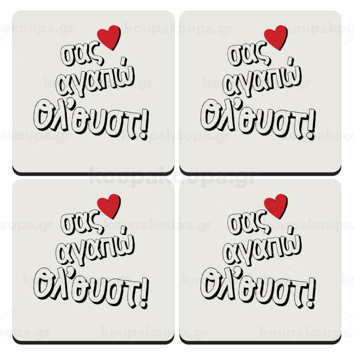 Σας αγαπώ όλ'ουστ!, ΣΕΤ 4 Σουβέρ ξύλινα τετράγωνα (9cm)