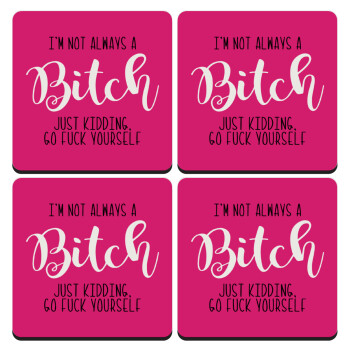 I'm not always a bitch, just kidding go f..k yourself , ΣΕΤ 4 Σουβέρ ξύλινα τετράγωνα (9cm)