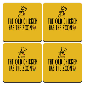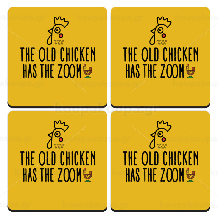 The old chicken has the zoom, ΣΕΤ 4 Σουβέρ ξύλινα τετράγωνα (9cm)