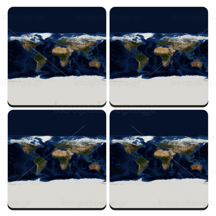 Earth map, ΣΕΤ 4 Σουβέρ ξύλινα τετράγωνα (9cm)