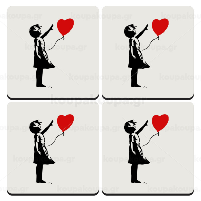 Banksy (Hope), ΣΕΤ 4 Σουβέρ ξύλινα τετράγωνα (9cm)