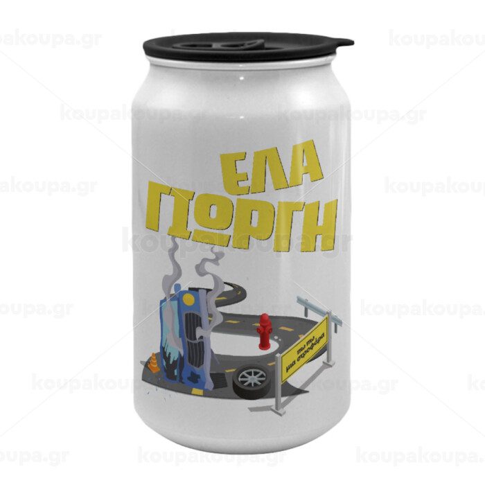 Έλα Γιώργη, πω πω μια στροφάρα, Κούπα ταξιδιού μεταλλική με καπάκι (tin-can) 500ml