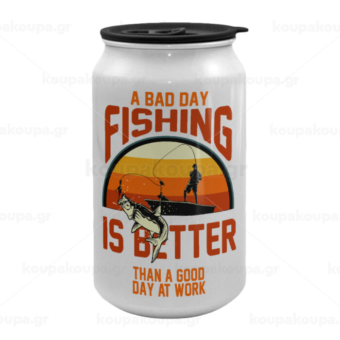A bad day FISHING is better than a good day at work, Κούπα ταξιδιού μεταλλική με καπάκι (tin-can) 500ml